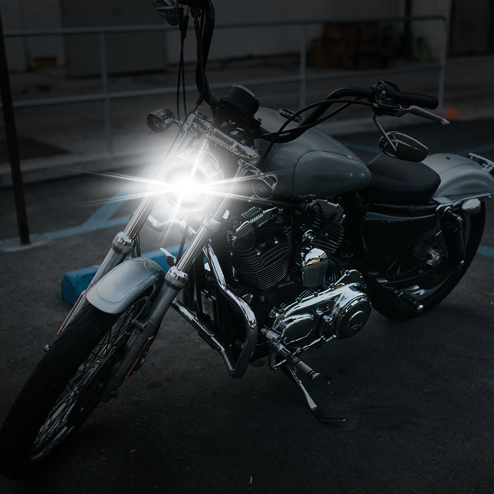 - One head lamp: fitted to the front of the motorcycle to adequately light the road ahead with a white or yellow light. The lamp should light the road ahead for a distance of 99 metres (325 feet) or 30.5 metres (100 feet) when dipped, and a reasonable distance for low-powered motorcycles.
