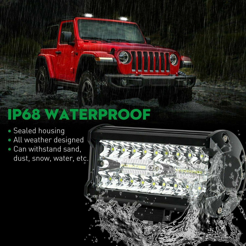 6063 Diecast aluminum housing for strength and durability. Upgrade PC lens surface with high light transmission. IP68 rated waterproof, dustproof and shockproof, the light bar can perfectly withstand rain, snow and other harsh weather.