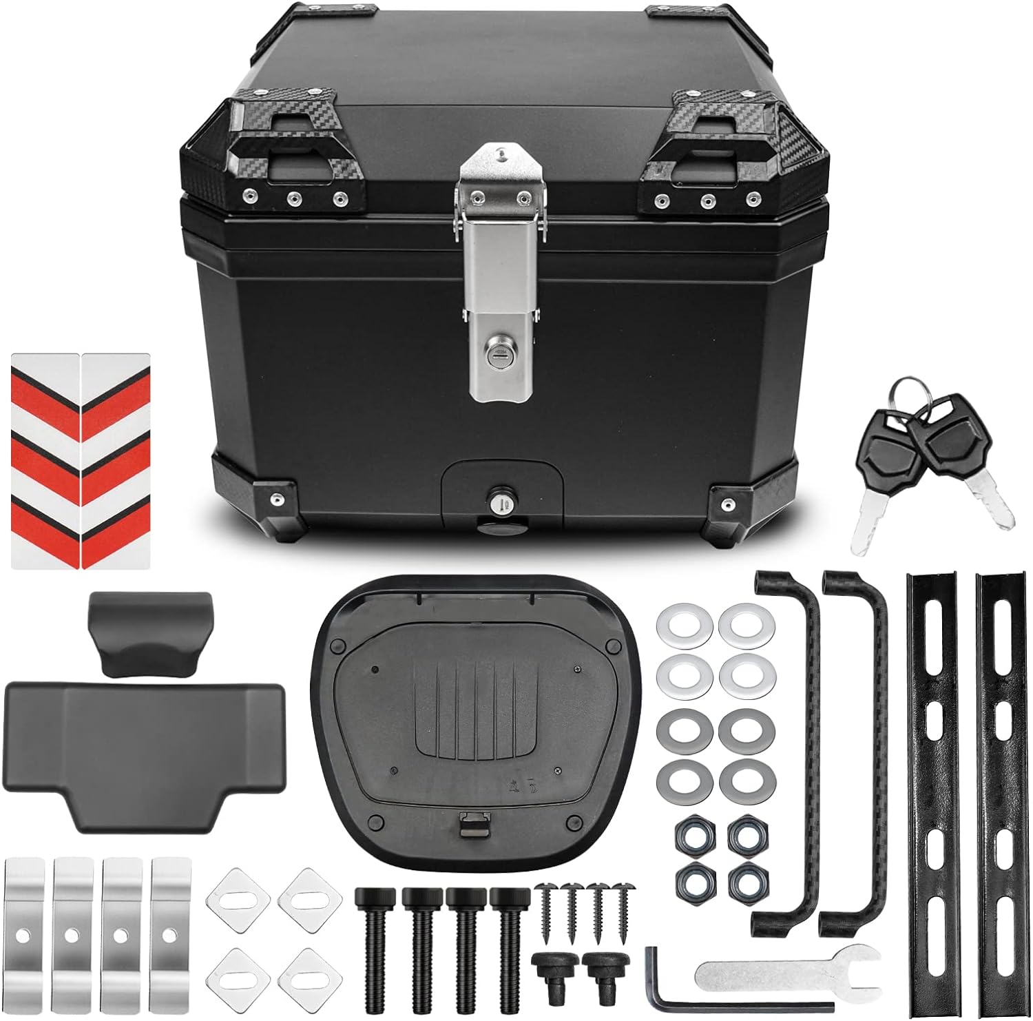 Upgraded 45L Motorcycle Top Case, Universal Motorbike Tail Box with Security Lock and Back Cushion, Waterproof Motorcycle Top Box with Bracket Base Plate